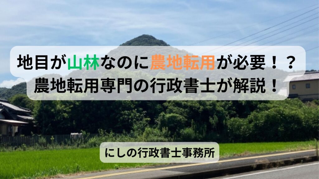 山林そのものは農地法の対象外ですが、現況が農地の場合には農地転用が必要です。